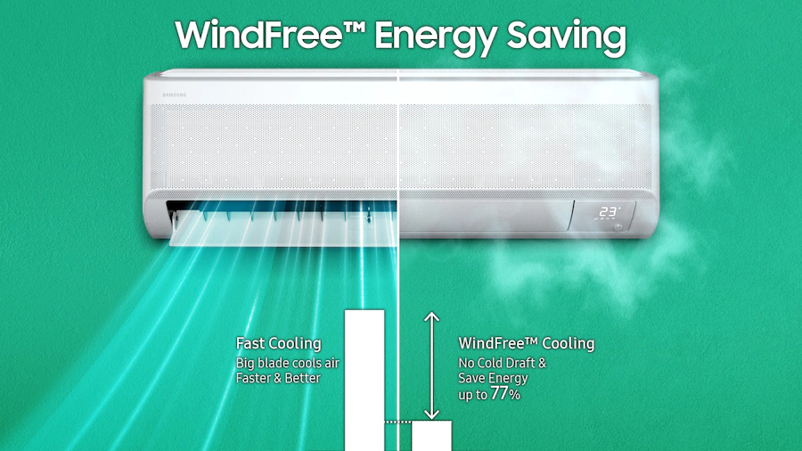 Experience efficient comfort with the new Samsung AR40. Designed to keep your space cool while keeping energy costs low, it features Digital Inverter technology and eco-friendly R32 refrigerant for reliable and environmentally conscious performance. Enjoy customized cooling for any moment with multiple operating modes, including Auto, Fast Cool, Good Sleep, and Dehumidification. The built-in HD Filter helps maintain cleaner air by capturing dust and allergens, promoting a fresher indoor environment. Built for durability, the AR40 includes DuraFin™ Plus to protect against corrosion and extend the life of the unit. Everyday operation is effortless with features like indoor temperature display and auto restart.